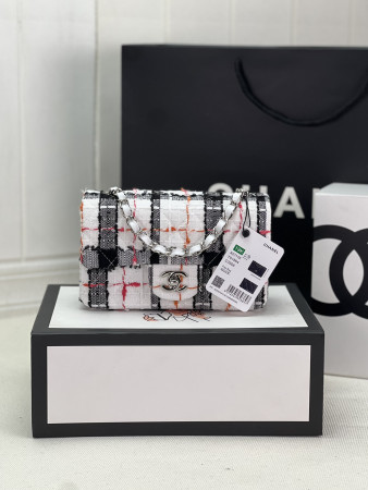 Ch*el MINI CLASSIC 11.12 HANDBAG Tweed & Silver-Tone Metal 4.7 × 7.8 × 2.3 in