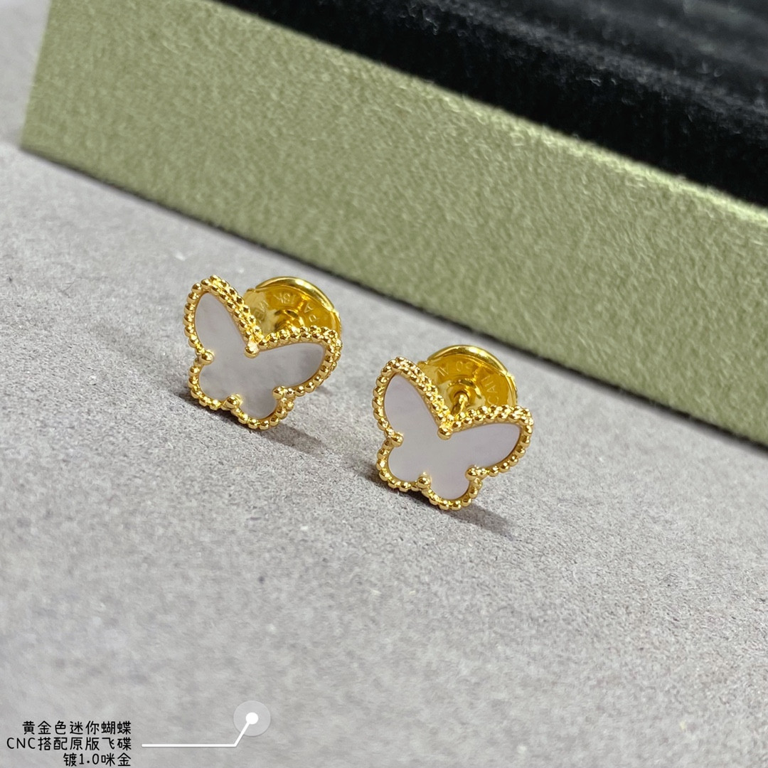 V*N CL*F & Arpels White Mother-of-Pearl Mini Butterfly Stud Earrings