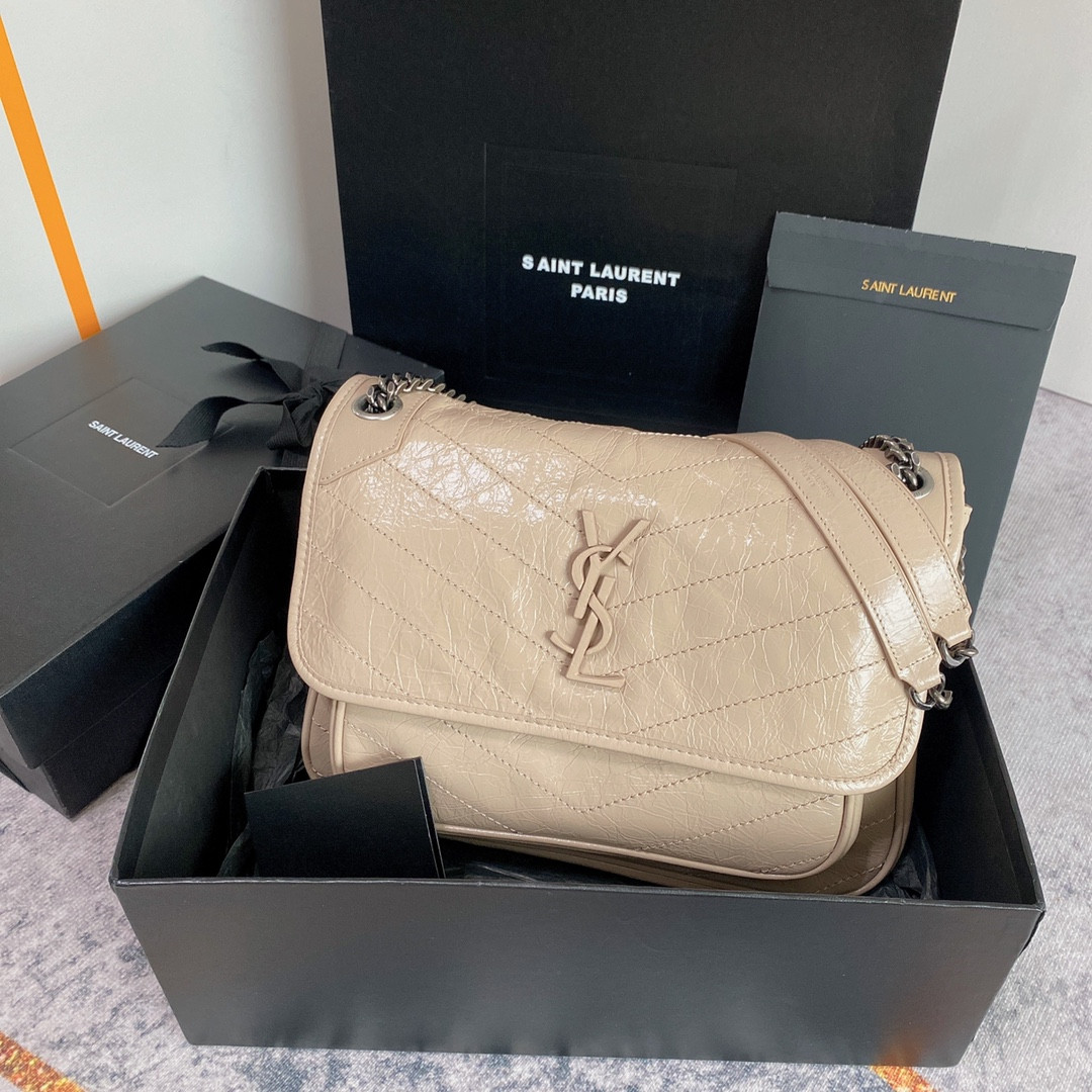 Y*L NIKI MEDIUM IN VINTAGE LEATHER BEIGE 11 X 7.8 X 3.3 INCHES