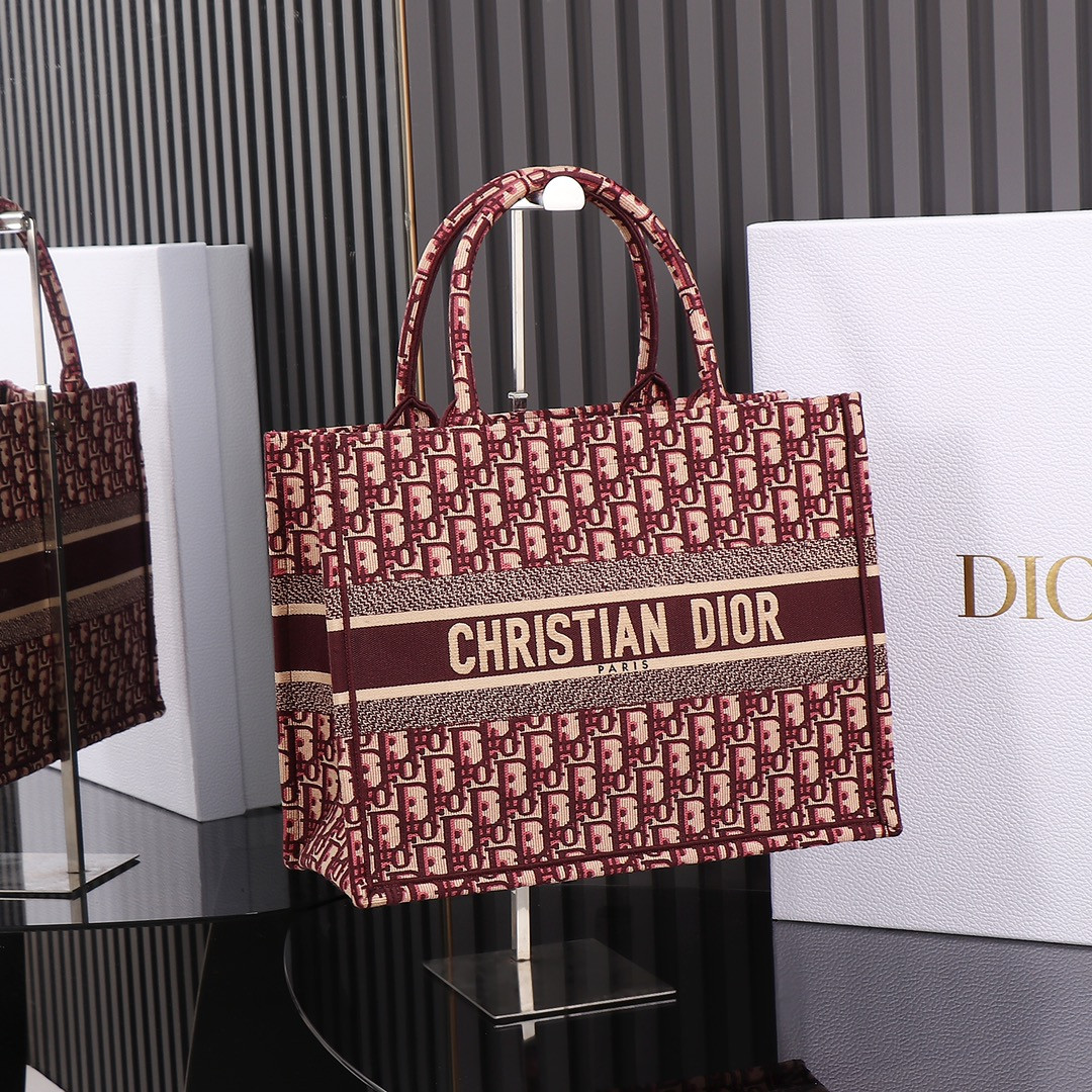 Medium D*0r Book Tote Oblique Burgundy 14 x 11 x 6.5 inches